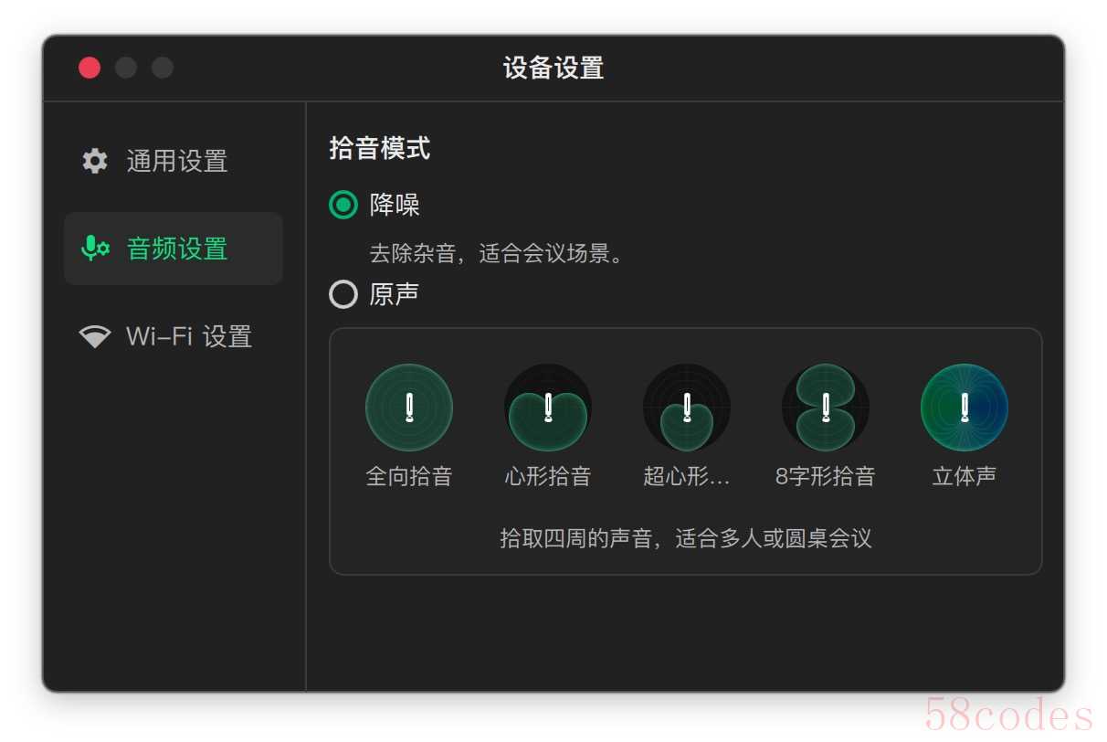 这里顺带说一下影石Insta360 Wave的操作方式,我们只需在电脑端或本体的屏幕上先选择不同的收音模式,影石共提供了六种拾音模式,适应各种场景。不过雷科技体验下来,如果是多人会议的话,直接开启默认的「全向拾音」即可。