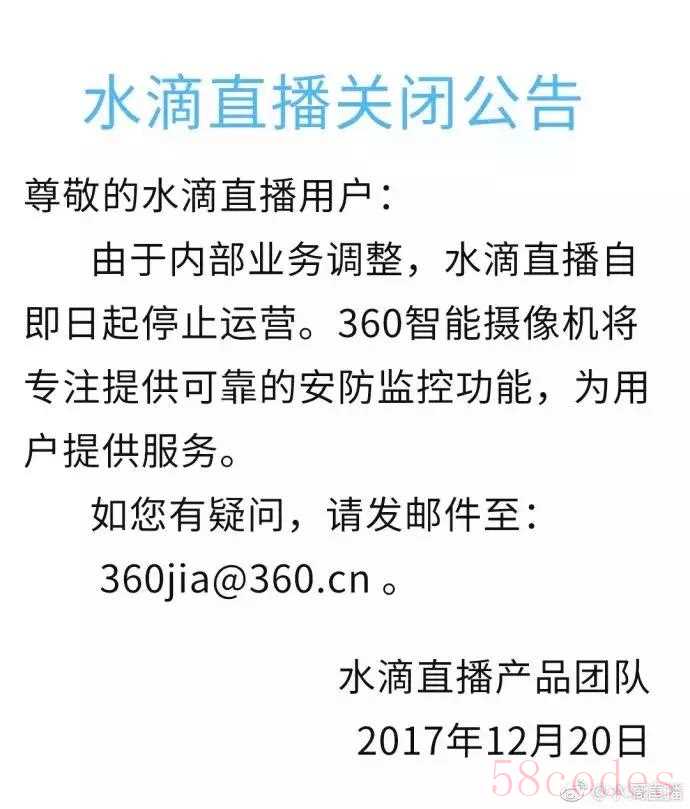 360宣布永久关闭水滴直播平台