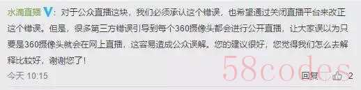 对于公众直播这块,我们必须承认这个错误,也希望通过关闭直播平台来改正这个错误。但是,很多第三方错误引导到每个360摄像头都会进行公开直播,让大家误以为只要是360摄像头就会在网上直播,这容易造成公众误解。