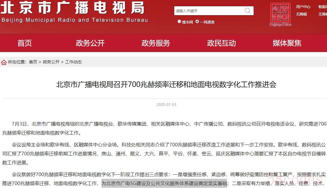 近日,北京市广播电视局也召开了700MHz频率迁移和地面电视数字化工作推进会。该局方面表示,700MHz频率的迁移将为北京市广电的5G建设工作奠定基础。