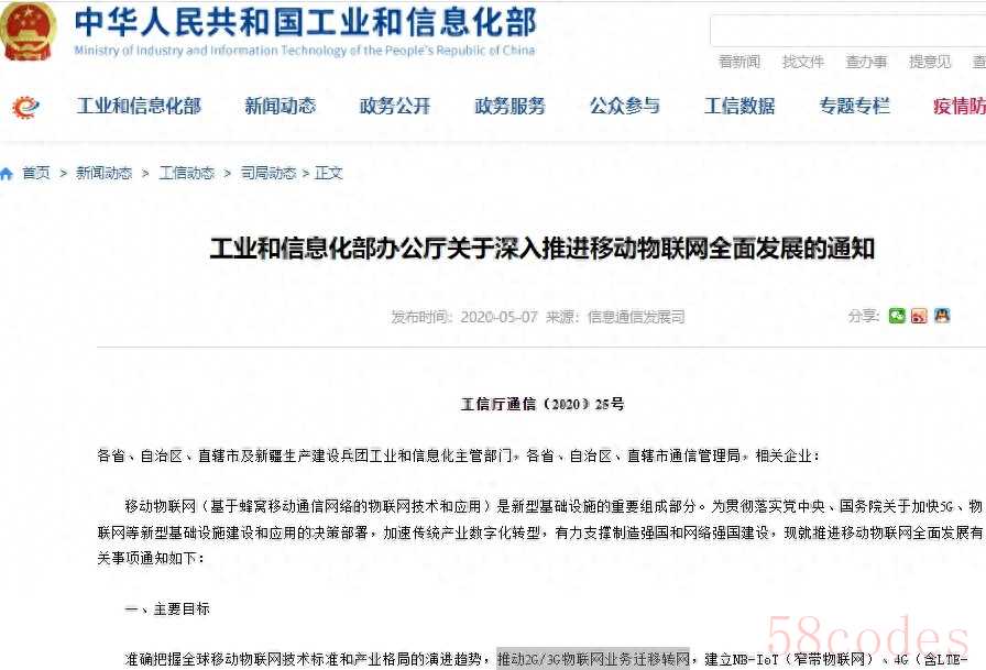 今年5月,工信部发布了《关于深入推进移动物联网全面发展的通知》,进一步提出了2G、3G迁移转网的具体内容和方向。