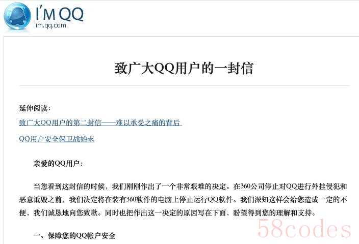 11 月 3 日,QQ 通过弹窗的方式,给用户推送了《致广大 QQ 用户的一封信》。