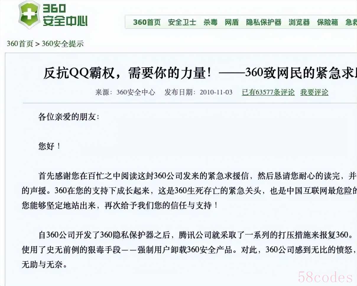 360 也发出了「紧急求助信」,呼吁网友停用 QQ 三天。