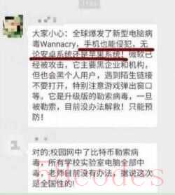 在“想哭”继续肆掠全球的同时,国内朋友圈频频被转载了一张微信对话截图,表示这种勒索病毒也能被侵犯手机,无论是安卓系统还是IOS系统。