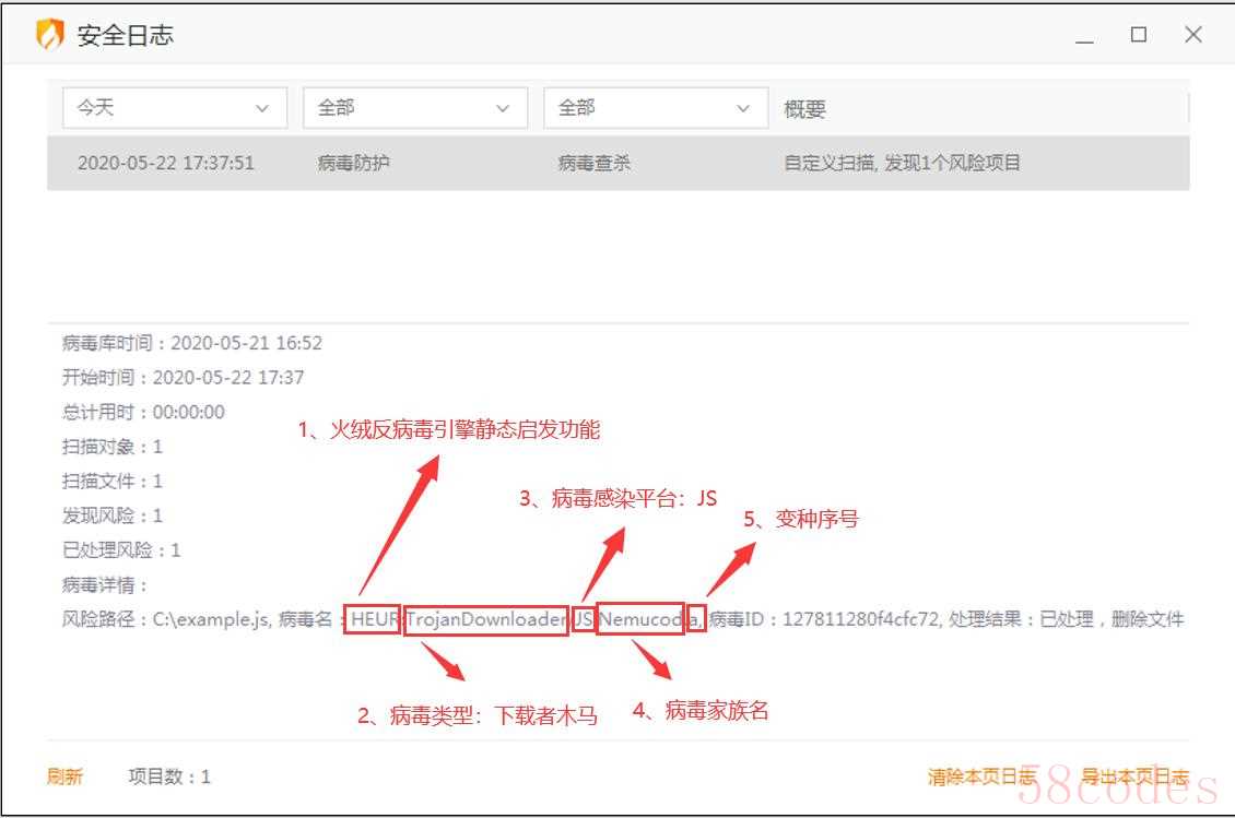 搞懂病毒类型和病毒家族名后,再来看火绒的报毒方式就很简单了。