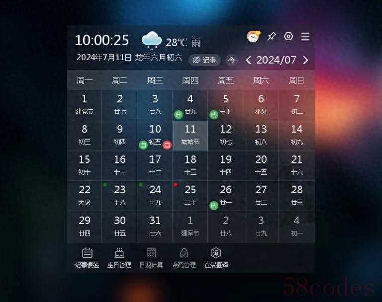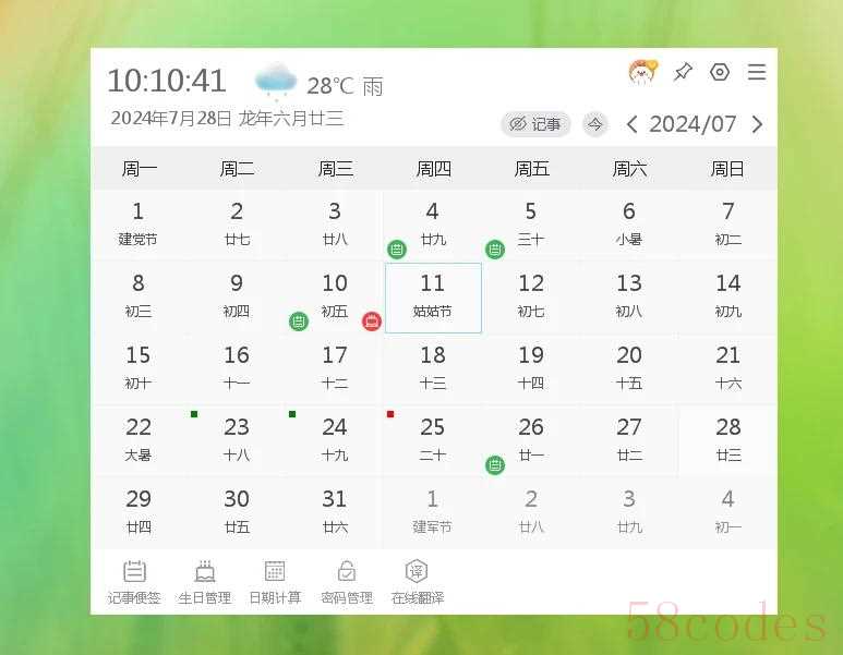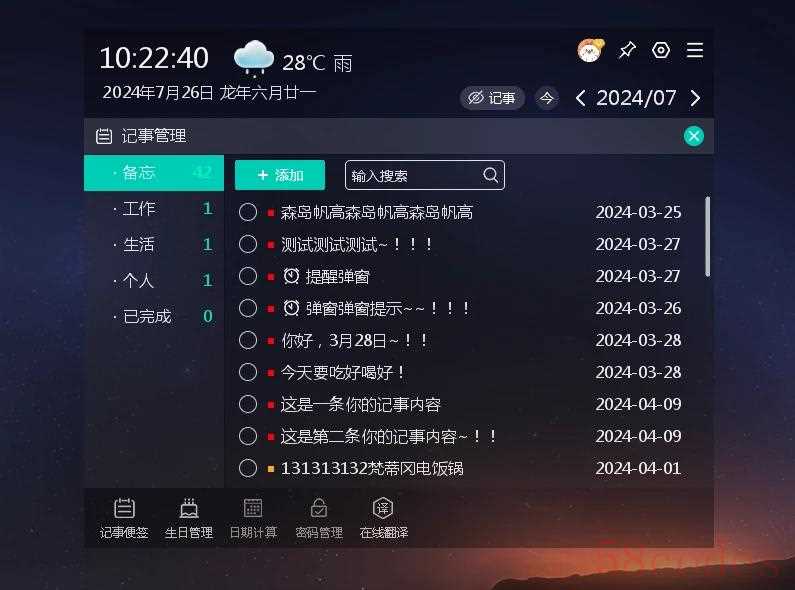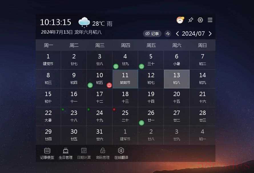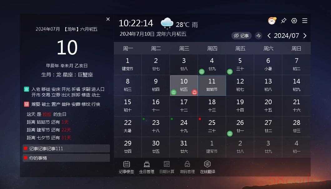 日历上还有其他功能,比如记事、记录生日、日期计算、打卡、调班等,大家也可以很方便的记录自己的事项,这样就不容易忘记了。