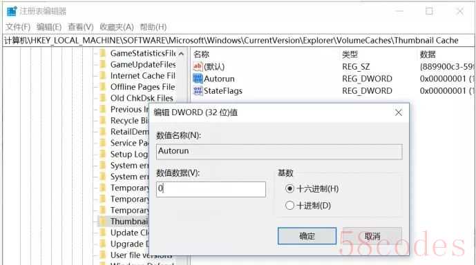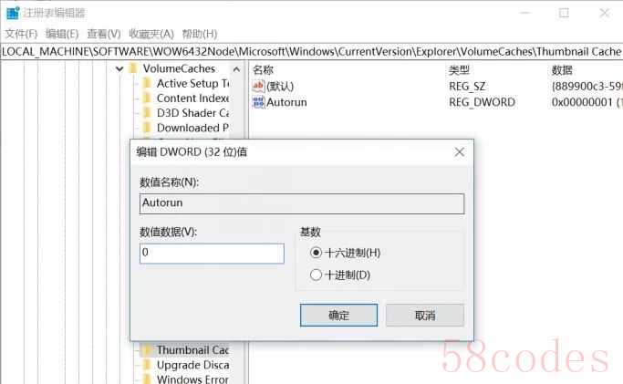 然后再定位到HKEY_LOCAL_MACHINESOFTWAREWOW6432NodeMicrosoftWindowsCurrentVersionExplorerVolumeCachesThumbnail Cache