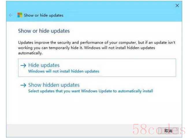 针对这个问题,微软官方其实推出了Windows10更新隐藏工具“Show or Hide Updates Troubleshooter”,用户通过它可以对不想安装的内容进行隐藏,这样就可以避免有问题的驱动和更新被安装。
