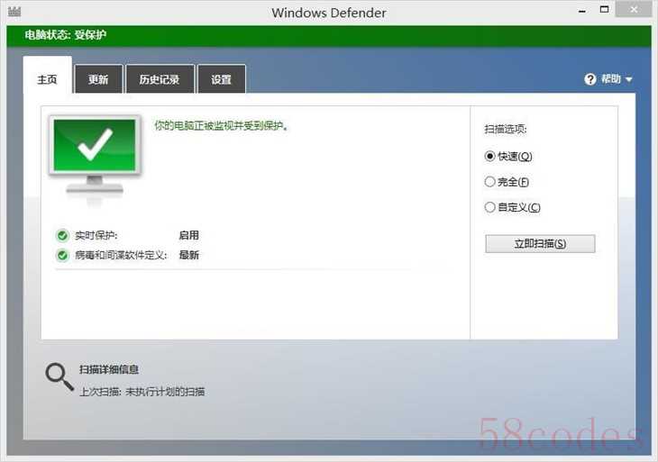 为了更好地保护计算机安全,微软还推出了Windows Defender,该安全工具提供了安全防护、快速检测病毒威胁、系统安全警告等服务。与第三方防御软件类似,Windows Defender还会不断更新病毒库(恶意软件库),让用户免受恶意攻击的骚扰。