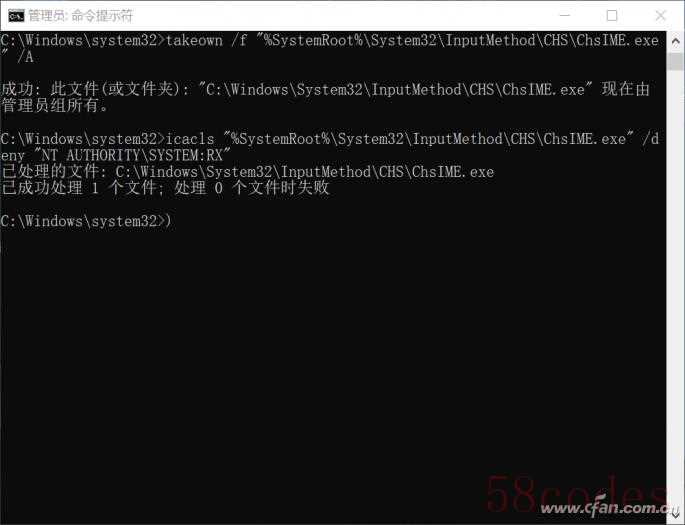 takeown /f "%SystemRoot%System32InputMethodCHSChsIME.exe" /A