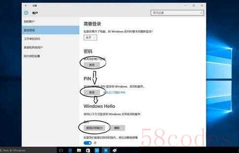 3、进入账户分别按照下图顺序分别设置,密码=>pin码=>Windows hello
