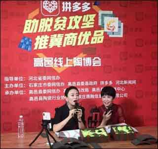 8月18日,首届河北-高邑(国际)陶瓷博览交易会盛大启幕。石家庄市高邑县人民政府副县长康平走进“助脱贫攻坚 推冀商优品”高邑线上陶博会直播间,向全国网友推介高邑瓷砖、陶瓷茶具等产品,为当地瓷业“代言”。直播当天,共吸引105万网友在线围观。详情请见→