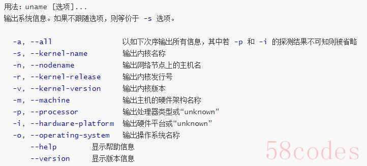 | -o | 显示操作系统名称 (Operating System Name),通常和 -s 相同 |