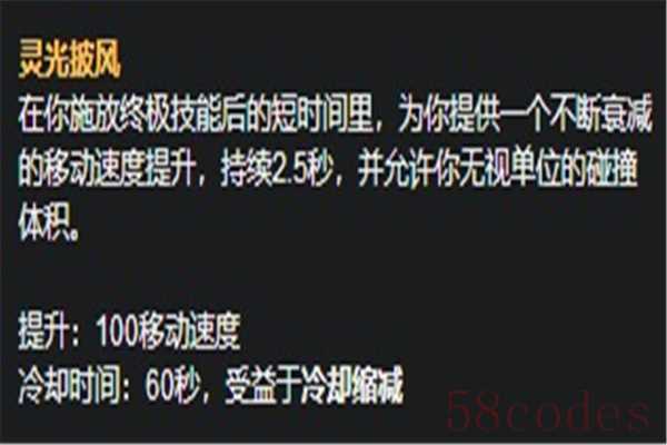 而灵光披风的加成,开启R后100的移动速度,可以再进一步强化开R后洛的移速,本身洛的R技能的瞬间开团能力已经很强了,有了灵光披风的加持,洛的开团能力再次提升,可能原来开团欠缺的距离会被灵光披风的加速填补,将洛的开团能力提升到恐怖的程度,堪称开团极速原子弹。