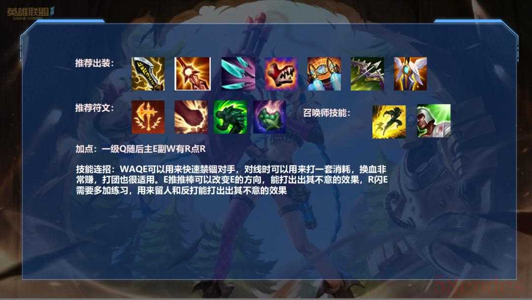 WAQE:相对于QAE,由于Q的技能释放速度还是根据攻速,在W的加成下,Q可以更快的打出去,不容易给敌人反应的时间。