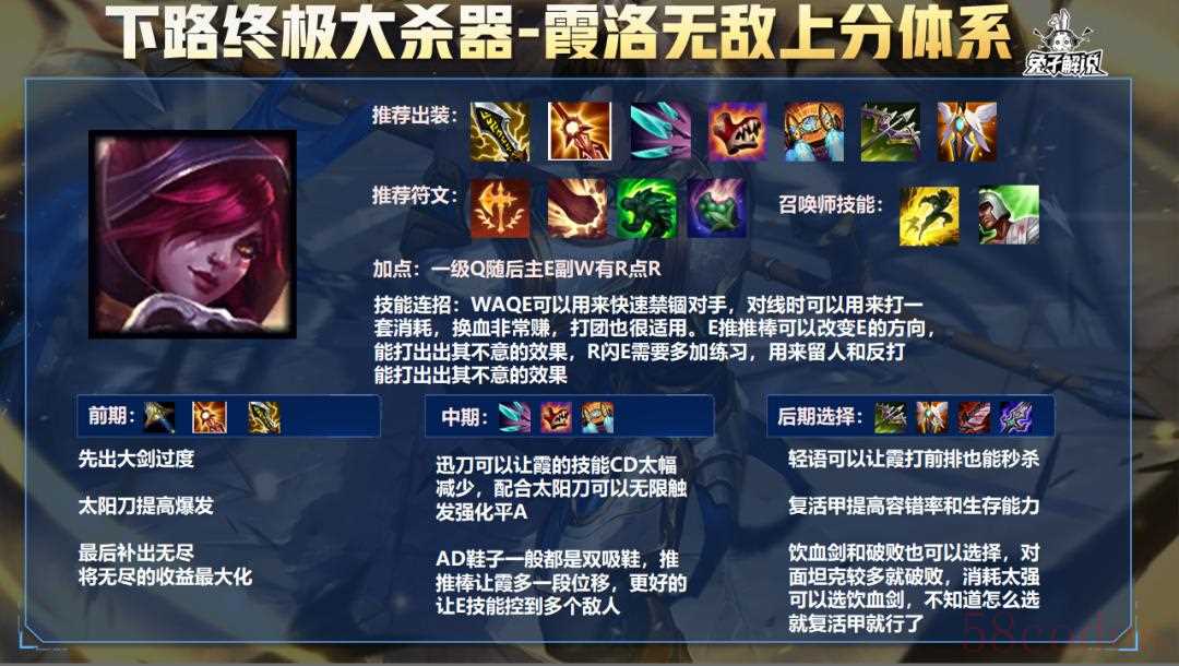 大家好,我是兔子攻略组的大马猴。昨天有人留言说洛都出了,把霞也出了吧。我想了想,目前霞洛组合在下路也算是统治级别的,强度也是分非常高,所以今天给大家出一期霞的攻略来帮助大家上分。