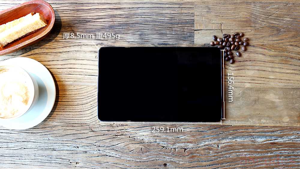 华为揽阅M2青春版分为7英寸版和10.1英寸版,今天我们体验的就是华为揽阅M2青春版10.1,它的正面采用黑色面板,熄屏状态确实很美。屏幕采用10.1寸全高清IPS屏幕,虽然是10寸级别的平板,但整机三围并不大,厚度只有8.5mm,重量也只有495g,拿起来不用担心砸脸。