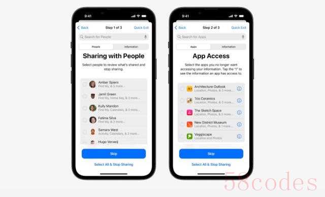苹果在iOS16中引入了新的安全检查(SafeCheck)特性,可以智能保护处于虐待关系的人们,受虐者可以保护自己的位置等隐私信息。