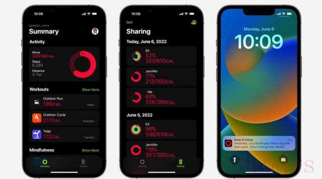 锁屏通知将会从底部呈现,新的通知样式被称为LiveAcitivites,用户可以从中获取体育、Uber状态、锻炼等信息。