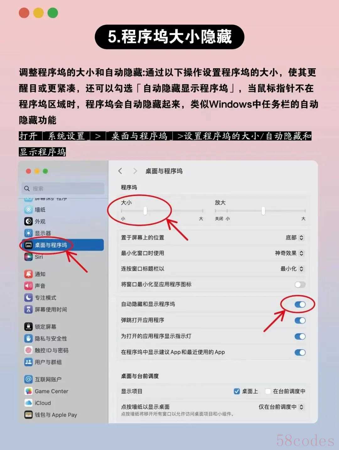 Mac的程序坞可以像Windows任务栏一样自动隐藏。打开「系统设置」>「桌面与程序坞」,可以调整程序坞大小,还能勾选「自动隐藏显示程序坞」,鼠标离开时程序坞就会隐藏,节省屏幕空间。