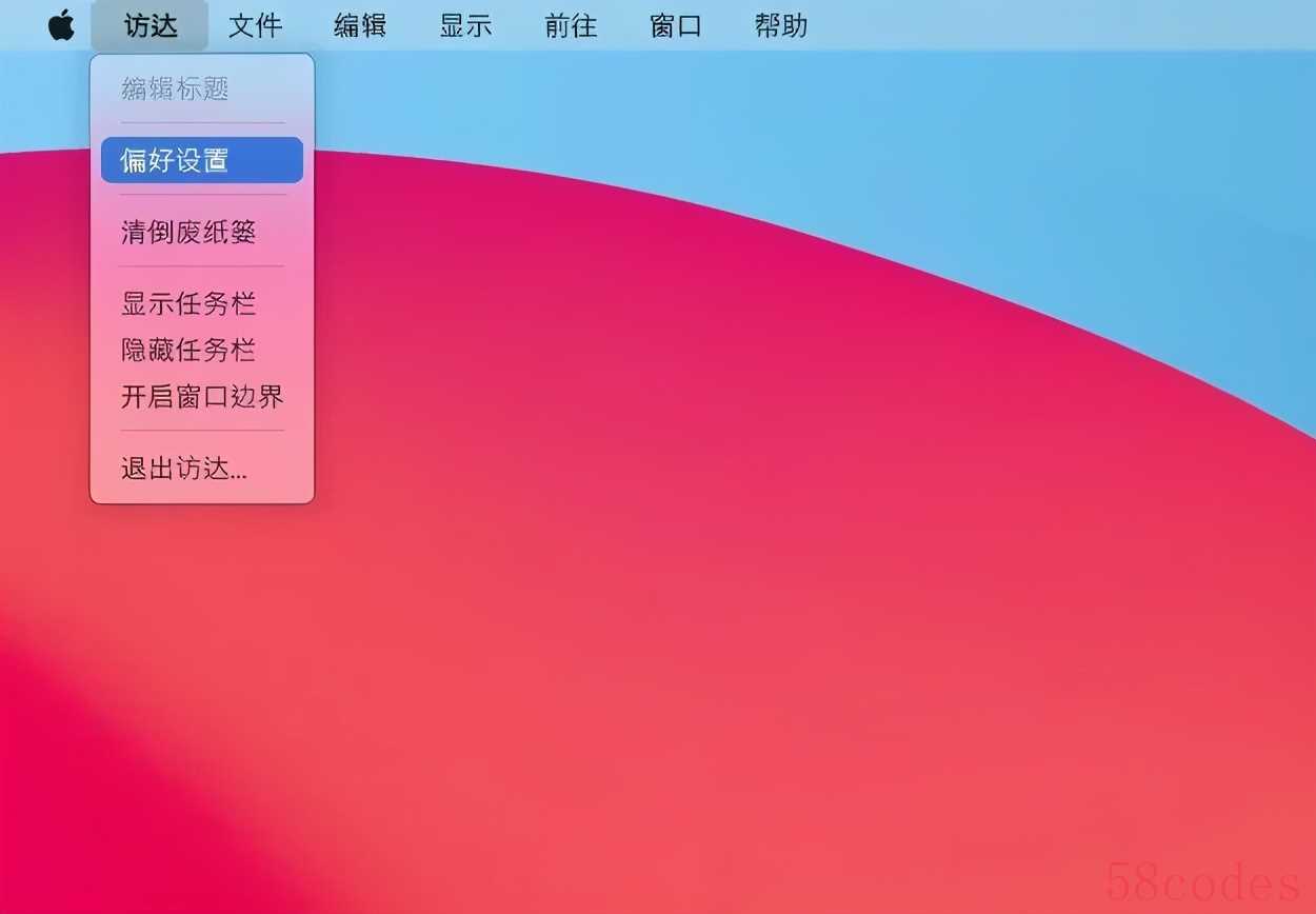 如果不小心关闭或者来不及设置,可以在点击左上角的访达中选择“偏好设置”进行设置。同时,为了可以更像Mac,建议点击“隐藏“任务栏。