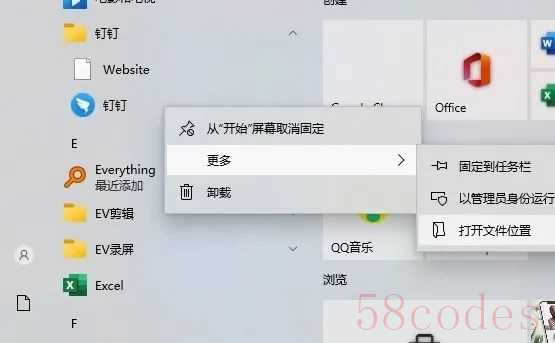 在开始菜单中,找到其中一个软件,右键选择“更多>打开文件位置”,可以查看在开始菜单下的大多数软件的快捷方式,方便批量添加软件。