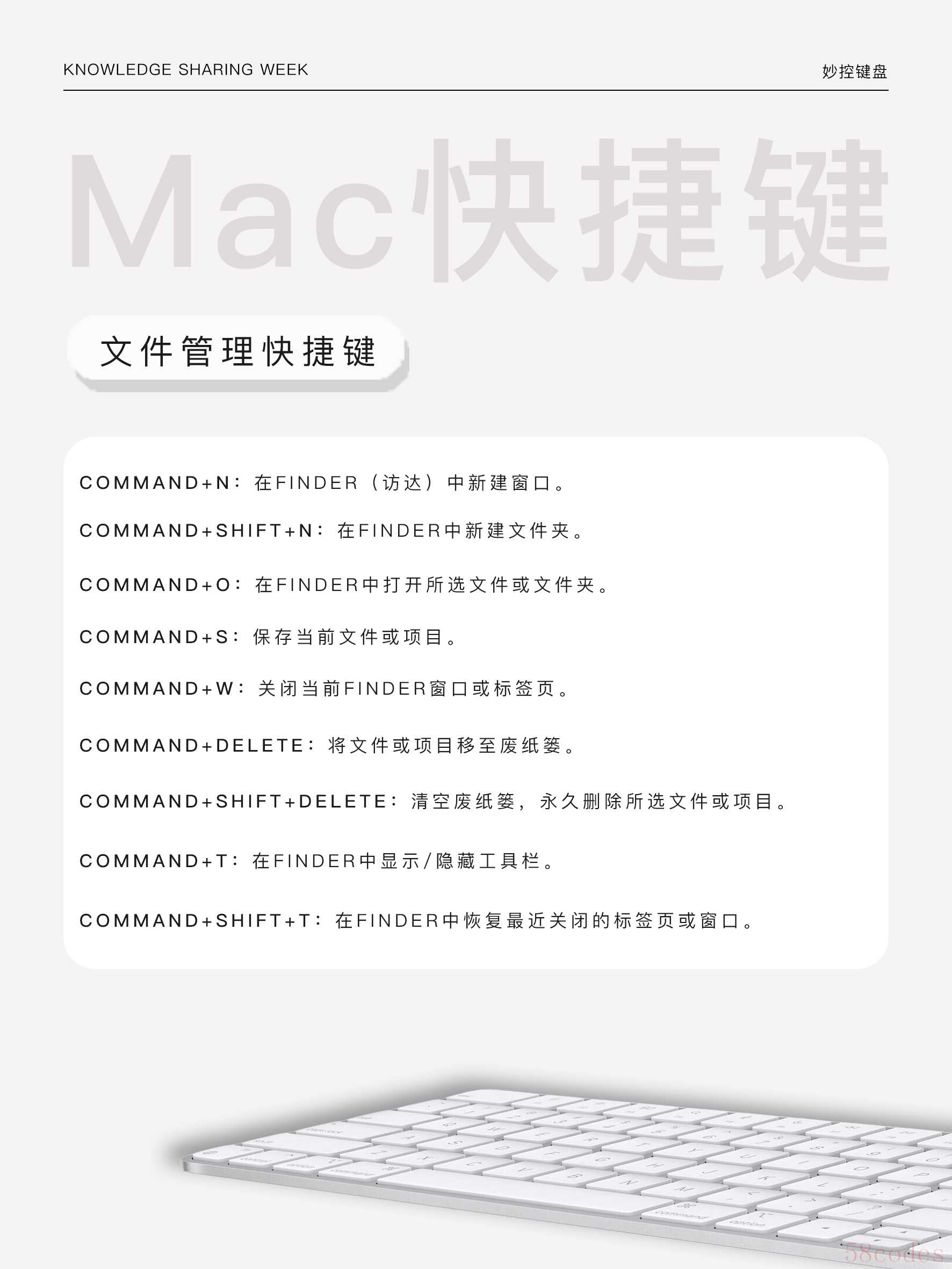 - Command+Shift+Delete:清空废纸篓,永久删除所选文件或项目。