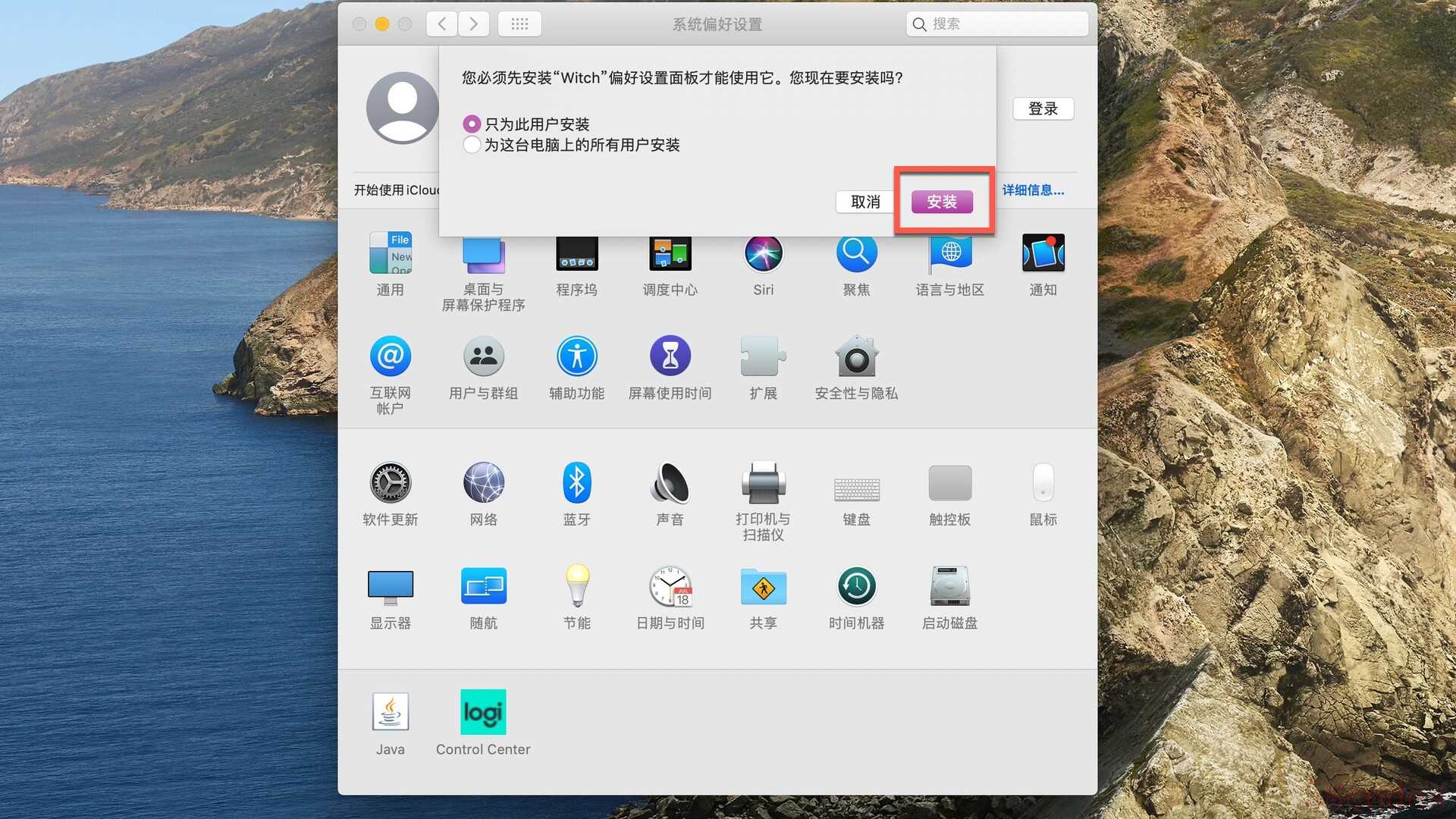 跳到系统偏好设置中,弹出下图所示的安装框,点击安装。