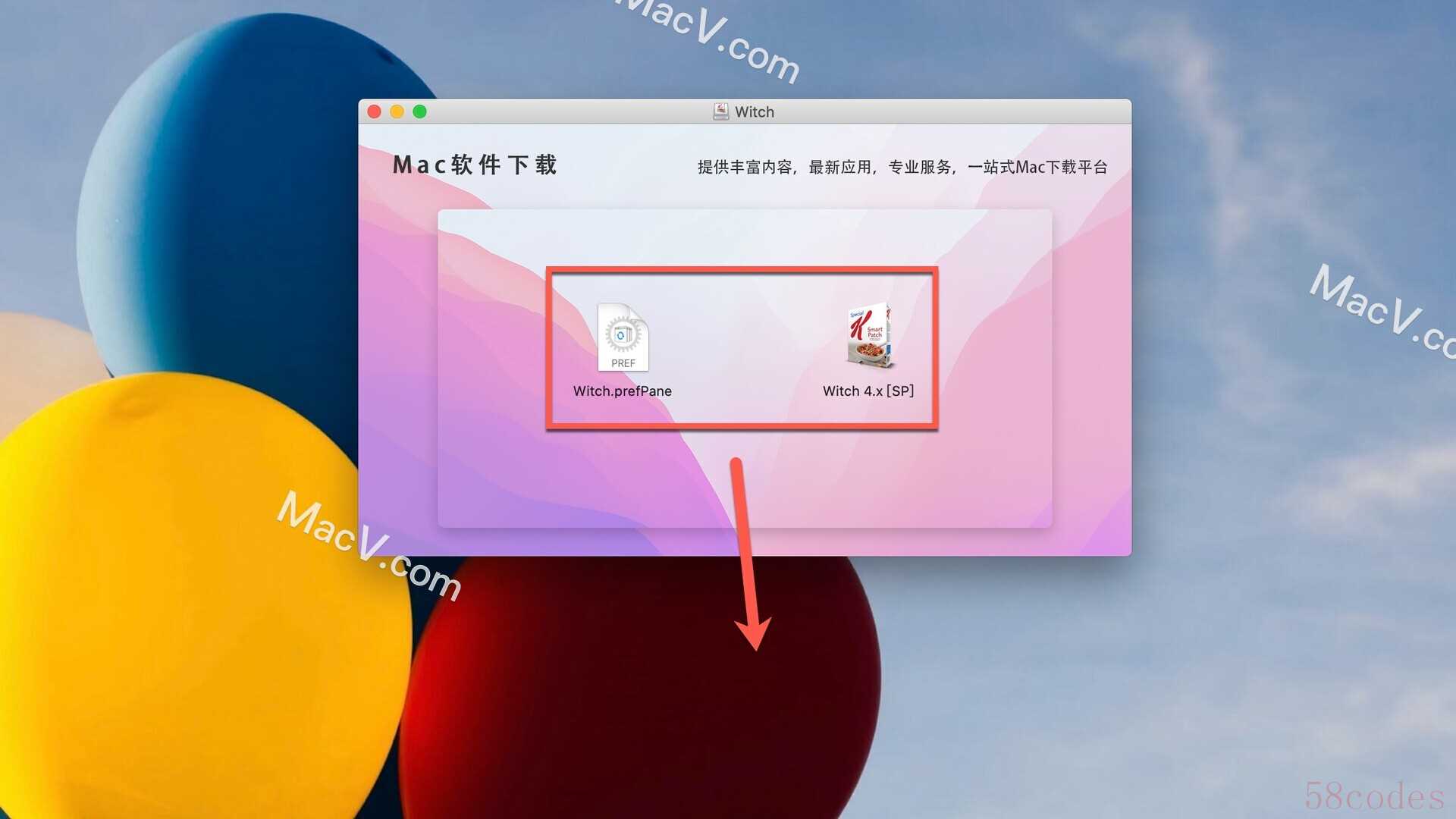 witch mac版下载完成后打开镜像包,将Witch.prefPane和Witch 4.x 拖到桌面,如图: