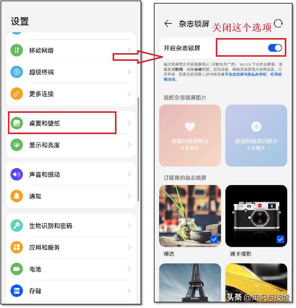 操作方法:打开【设置】-【桌面与壁纸】-【杂志锁屏】把所有订阅全部取消即可。