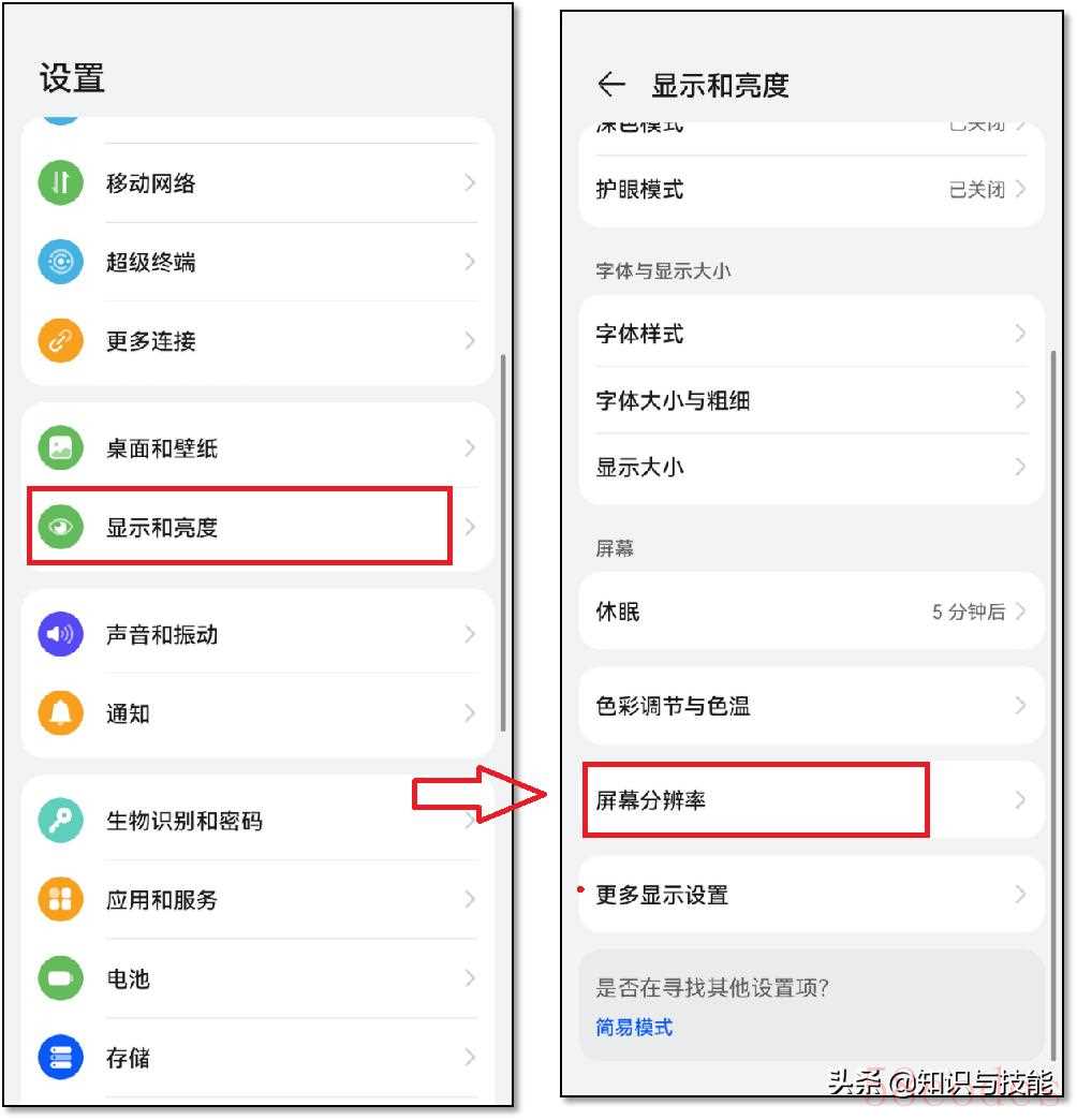 操作方法:打开【显示和亮度】-【屏幕分辨率】将智能分辨率改为FHD,这样屏幕细腻度会更加清晰。
