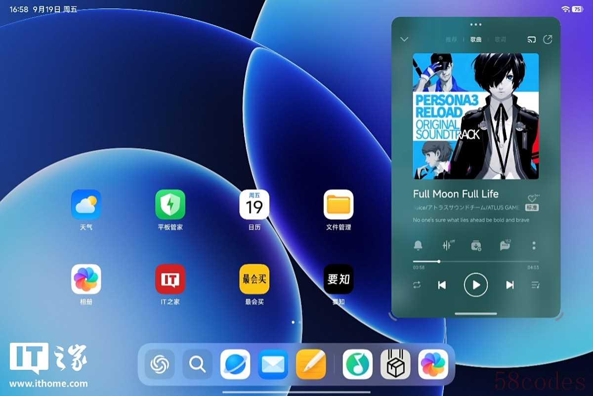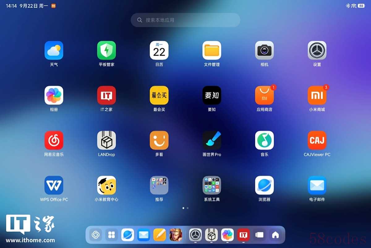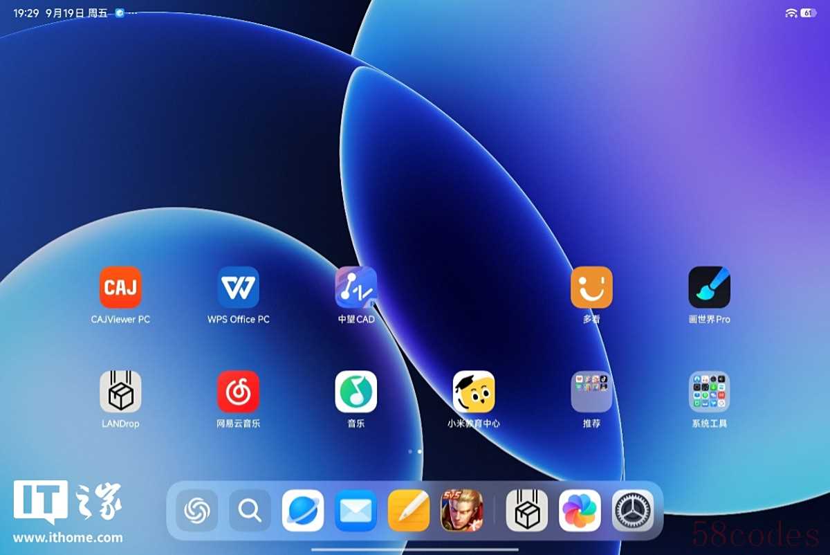 与此同时,底部导航栏会出现「工作台模式」专属的 Dock 抽屉,录屏和主页按钮,点击 Dock 抽屉后,所有应用图标和文件夹都会收纳其中,而主页则只显示当前打开的应用和导航栏图标。