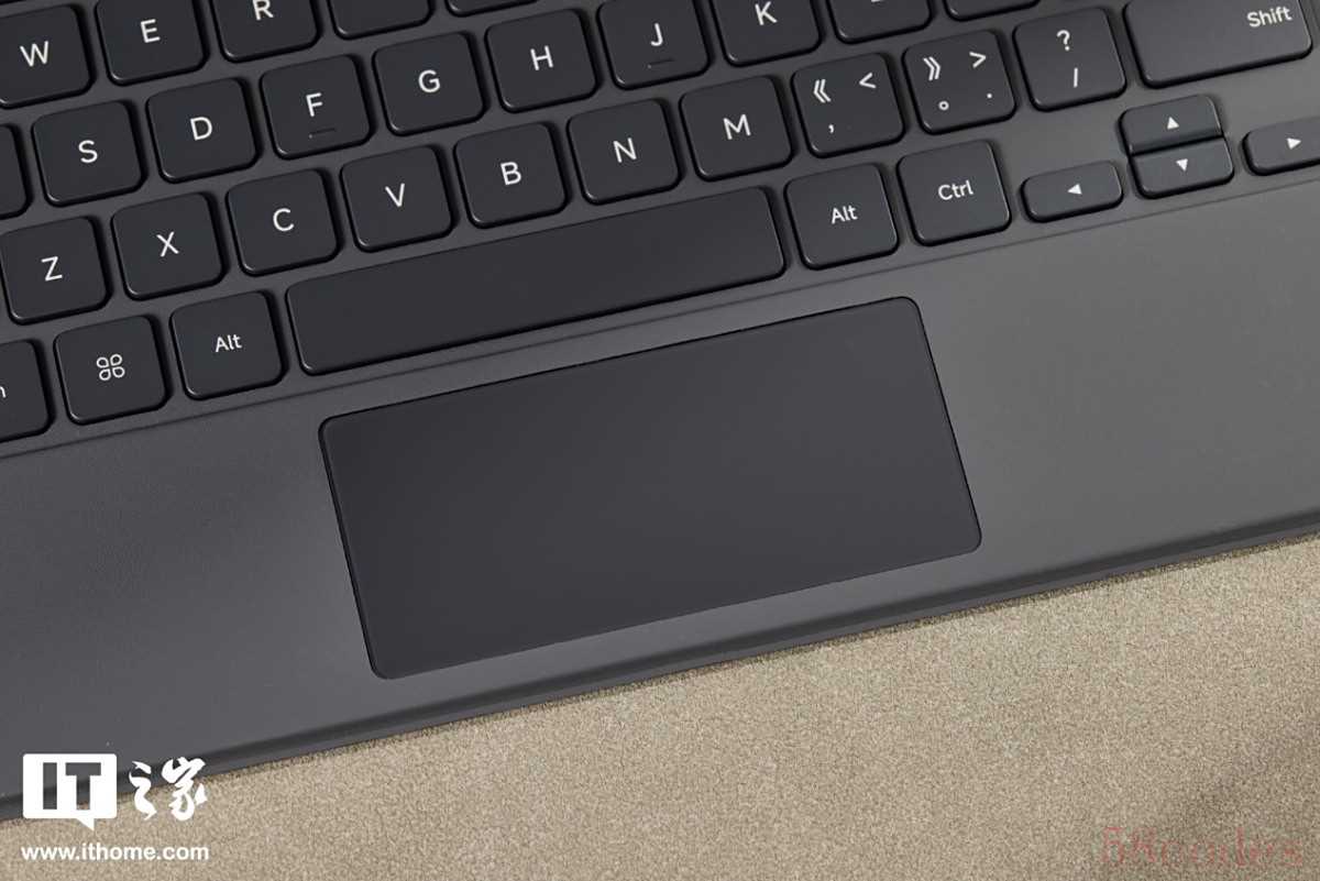 键盘布局照旧,触控板区域做了加长设计,磁吸键盘保护壳的重量接近 600g,搭配手写笔和平板全套重量约 1.1kg。