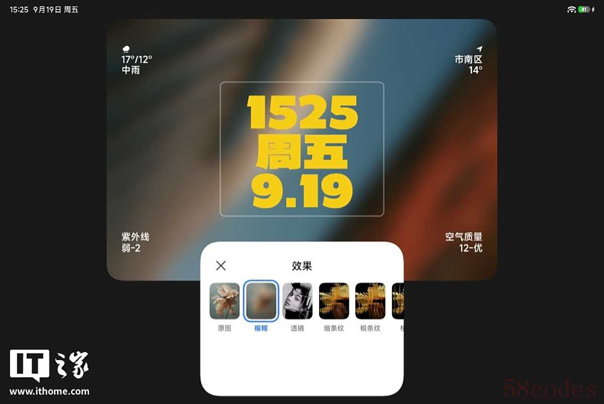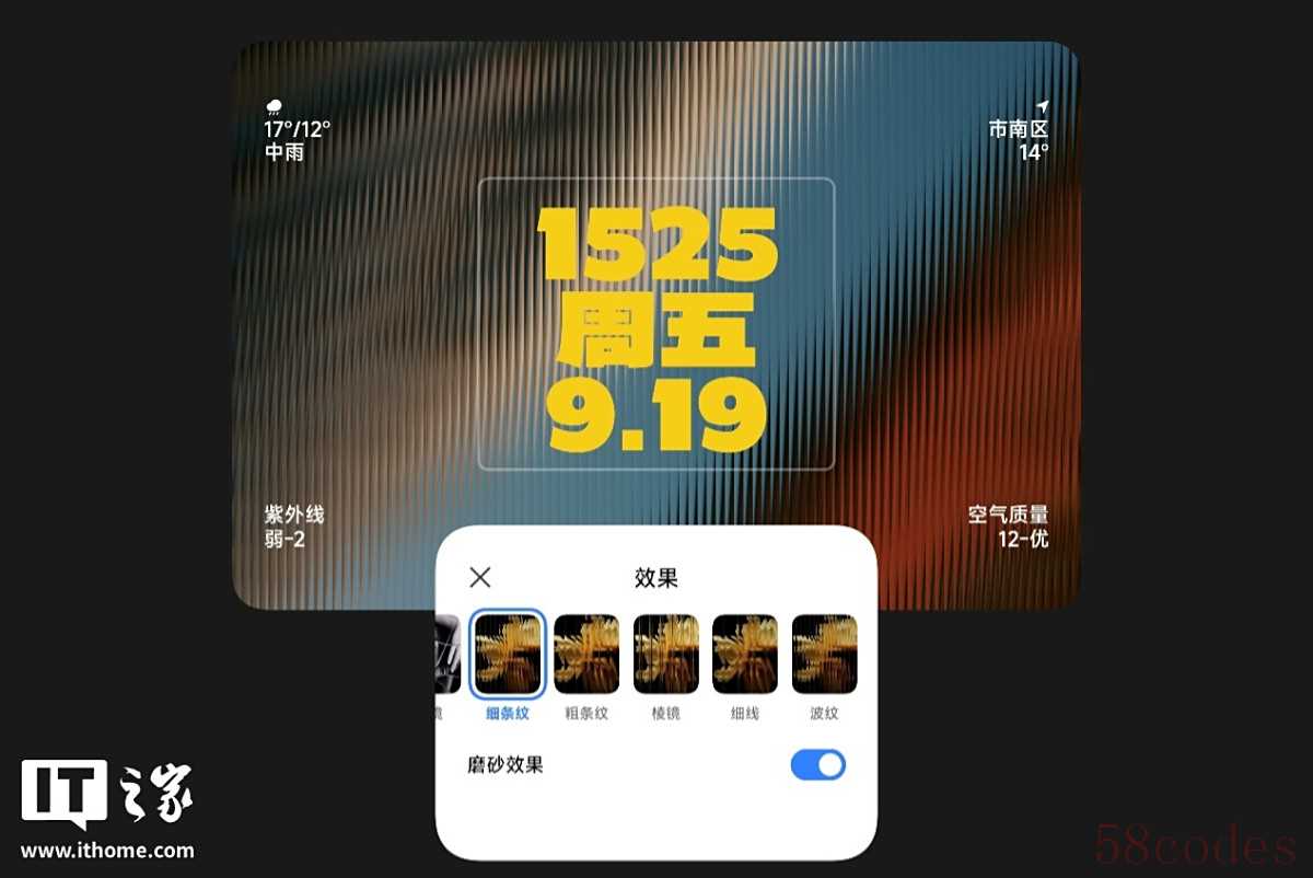 点开任意一个主题模板,还提供了丰富的自定义选项,比如修改时钟样式和字体颜色、背景模糊和玻璃格栅效果,增加整体的质感。其中时钟样式支持跨主题切换,所有样式都能用。