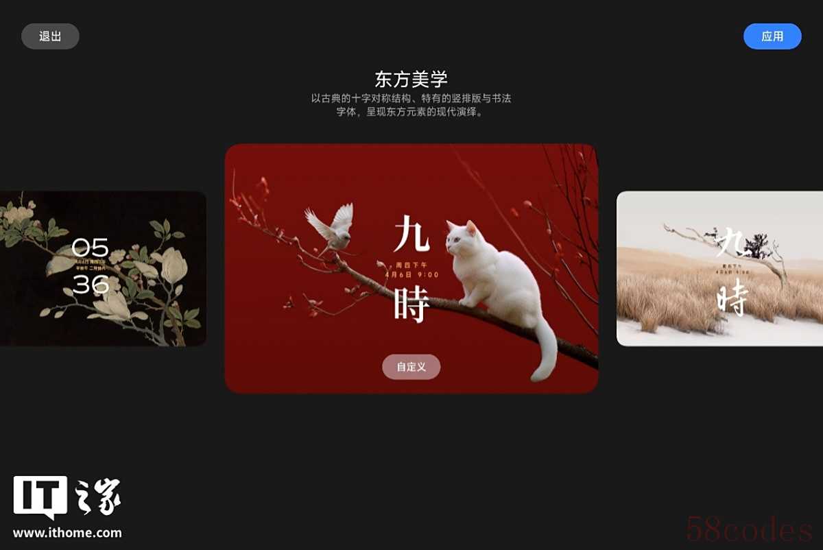 在锁屏界面长按、屏幕底部会出现锁屏自定义选项,点开就能看到非常丰富的锁屏样式预设。目前提供了经典锁屏、影像杂志和东风美学 3 种锁屏主题,每种主题下均有数个模板可以选择。