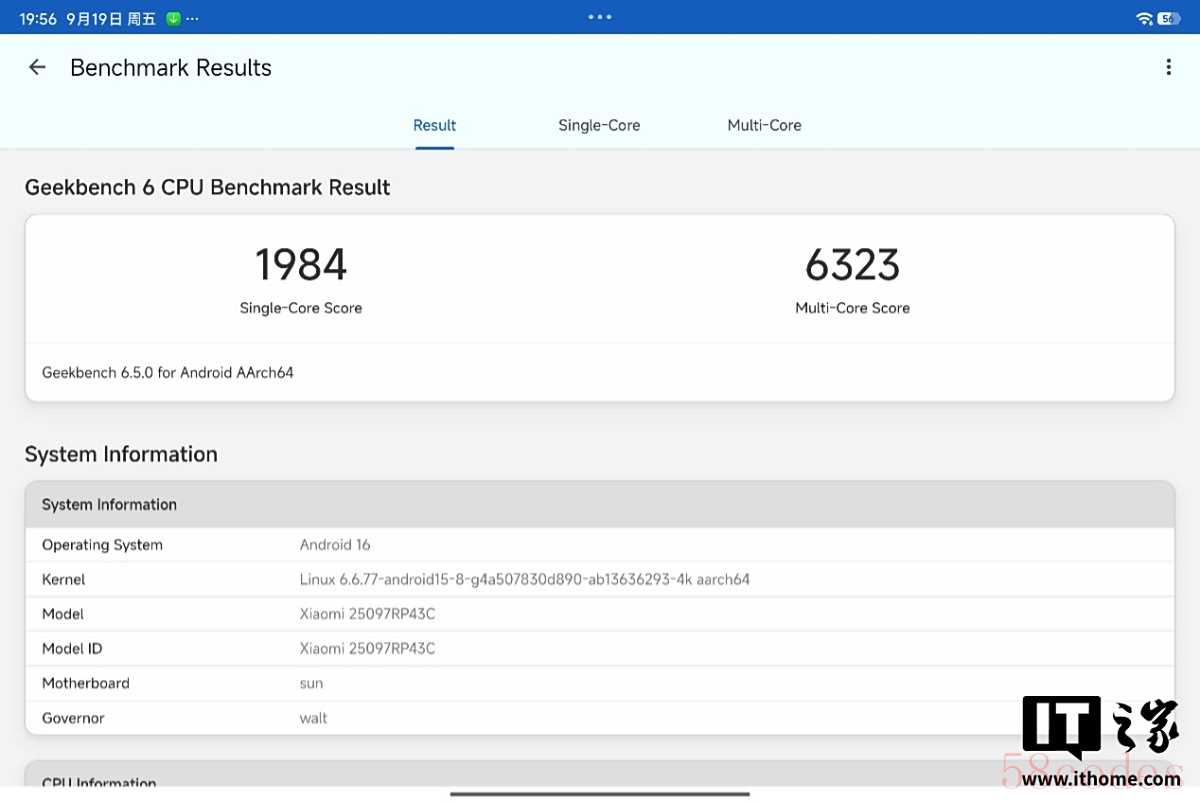 从整体配置上看,小米平板 8 柔光版适合日常轻度办公和影音娱乐,毕竟原生 3.2K 分辨率对第四代骁龙 8s 处理器的压力还是很大的,如果追求出色的大型手游体验,更建议大家买搭载骁龙 8 至尊版处理器和 16+512GB 大存储的小米平板 8 Pro。这里我们通过 GeekBench 6 跑个分,给大家一个简单的参考。实测小米平板 8 的 CPU 单核成绩为 1984 分,多核成绩为 6323 分。