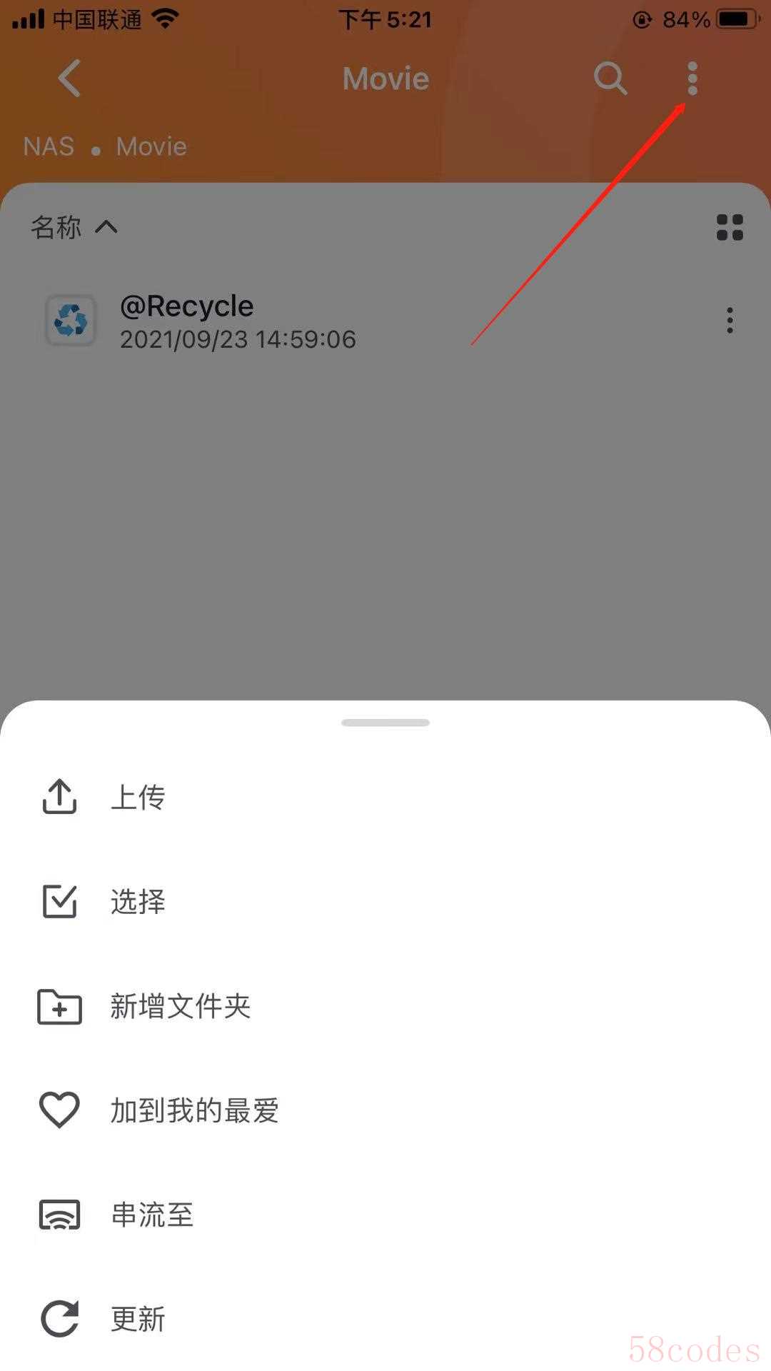 右上角的三个点,直接进入一个文件夹点击右上角上传你的资料