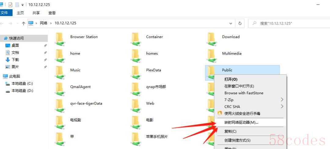 右击想要共享的文件夹点击,映射网络驱动器,选择一个盘符后。