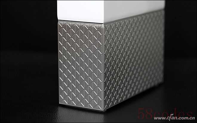 My Cloud Home长了一副非常具有家居范的外观。它的机身是由两种风格的部分拼接而成,上半部分为晶莹剔透的白色水晶壳,银色的下半部分表面被切割出了规则的网纹,看起来有质感,摸起来有触感,摆在哪里都能成为家居里的点缀。