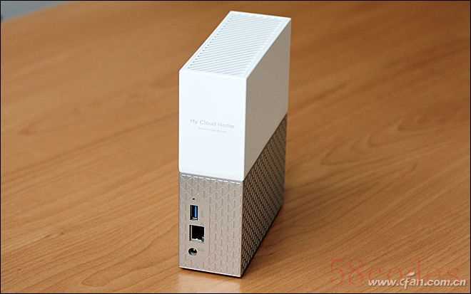 正面的水晶壳中间嵌有西部数据WD的品牌Logo,背部则印有My Cloud Home的型号名称,以及访问网址提示。银色网纹背部提供了USB3.0接口、RJ45网线接口和电源插孔。