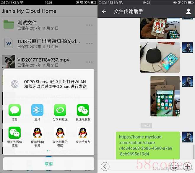 想将保存在My Cloud Home中的内容下载到手机上,需要使用共享方式,就和常见的网盘类似,创建共享链接,分享给QQ、微信等社交软件的好友(包括自己)。