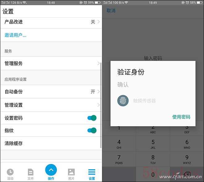 如果你担心安全问题,还可开启APP端的密码服务,同时使用指纹登录。这样就不用担心别人玩你手机时偷着查看My Cloud Home中保存的隐私内容了。