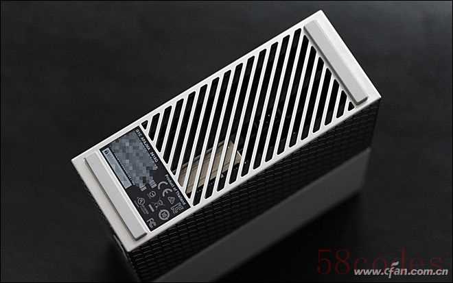 My Cloud Home顶部和底部都留有散热通风口,底部的铭牌上也印有设备串号信息,和账号绑定时会用到。
