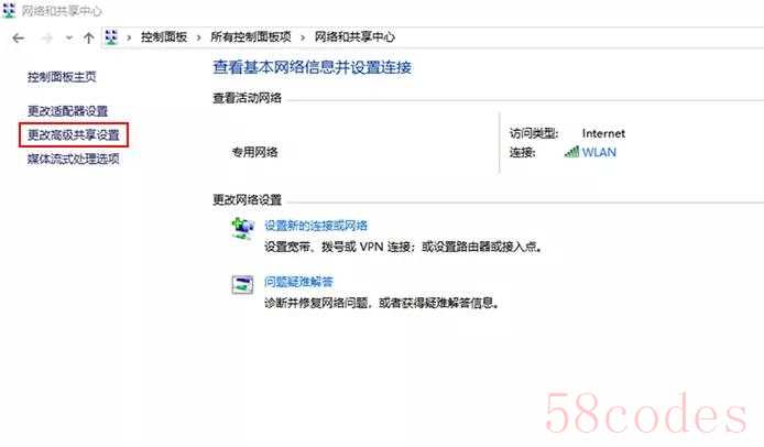 接下来打开“控制面板”,进入“网络和共享中心”,选择“更改高级共享设置”选项卡。进入后选择“启用网络发现”和“启用文件和打印机共享”,到这一步文件共享设置完成。