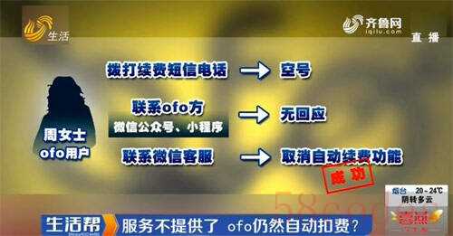 据北京日报消息,本月4号,周女士发现自己的微信账户突然被扣了52元钱。一查发现是ofo季卡自动续费。为了避免再被扣费,周女士急忙解绑,她先是拨打了续费短信上留的电话,结果发现这个号码是空号;她又试图通过微信公众号、小程序联系ofo方,也都没得到对方的回应。最后,她联系了微信客服,得知自己ofo季卡的自动续费功能是通过微信开通的,于是赶紧请客服人员帮自己取消了,微信方面称会与ofo方联系。记者登录ofo软件发现,确实找不到解绑骑车卡的进入端口,连首页曾经显示的“查看押金”入口也消失不见了。未退押金的用户已无法查看退押金的进度,记者多次拨打ofo客服电话,均显示呼叫失败。通过ofo软件联系在线客服询问,软件自动回复当前排队咨询人数,之后再未收到具体应答。值得一提的是,周女士早在今年的3月和6月也收到过续费的短信通知,但因微信账户没有余额,所以自动扣款并未成功。当时她以为,ofo既然已经不运营了,这个短信也就没必要理会了。但是让她没想到的是,因为最近微信账户恰好有一笔转账来的钱,ofo季卡自动扣款竟然成功了。既然不提供单车服务了,竟然还会自动续费,确实让人匪夷所思。那么,这种情况是否普遍存在呢?还有对于那些绑定续费业务的用户来说,如何解绑呢?