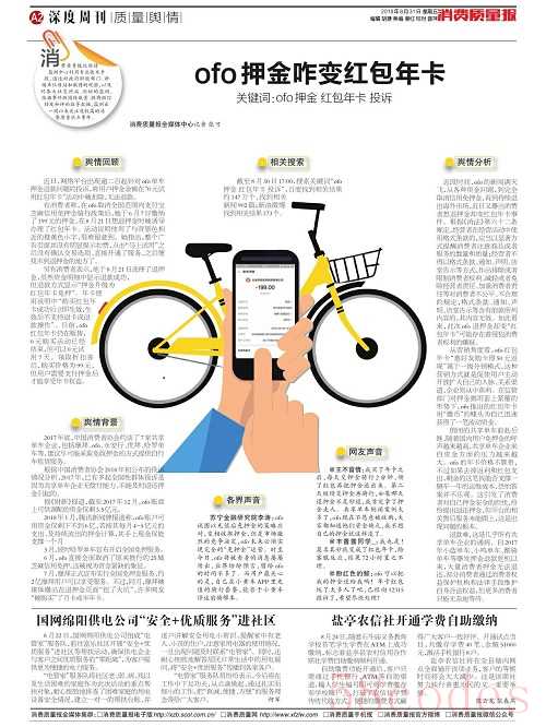 关键词:ofo押金 红包年卡 投诉