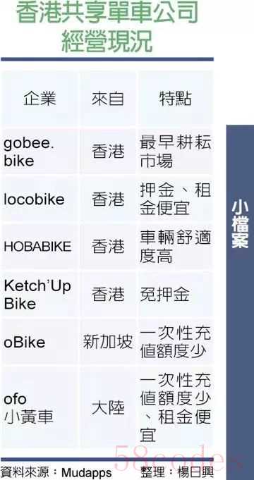 值得一提的是,有网站曾对香港存在的6家共享单车企业(4家本地品牌+1加国外进驻品牌+1家内地品牌)进行实测,依照单车性质和服务质量给出的推荐排行,ofo小黄车位列第6,而Gobee.Bike位列第一。