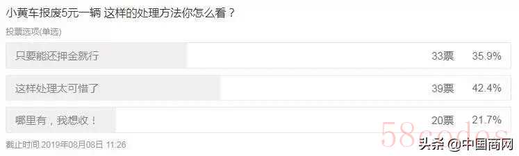 除了上述“回款”方式被网友吐槽以外,据21世纪经济报道,在北京垃圾回收市场看到,废弃的ofo小黄车被以5元一辆的价格回收。而这个消息同样引发网友大规模吐槽,不少网友认为这也太可惜了,据悉,根据ofo提供单车制造的厂商财报数据,每辆小黄车的成本价约在300余元。