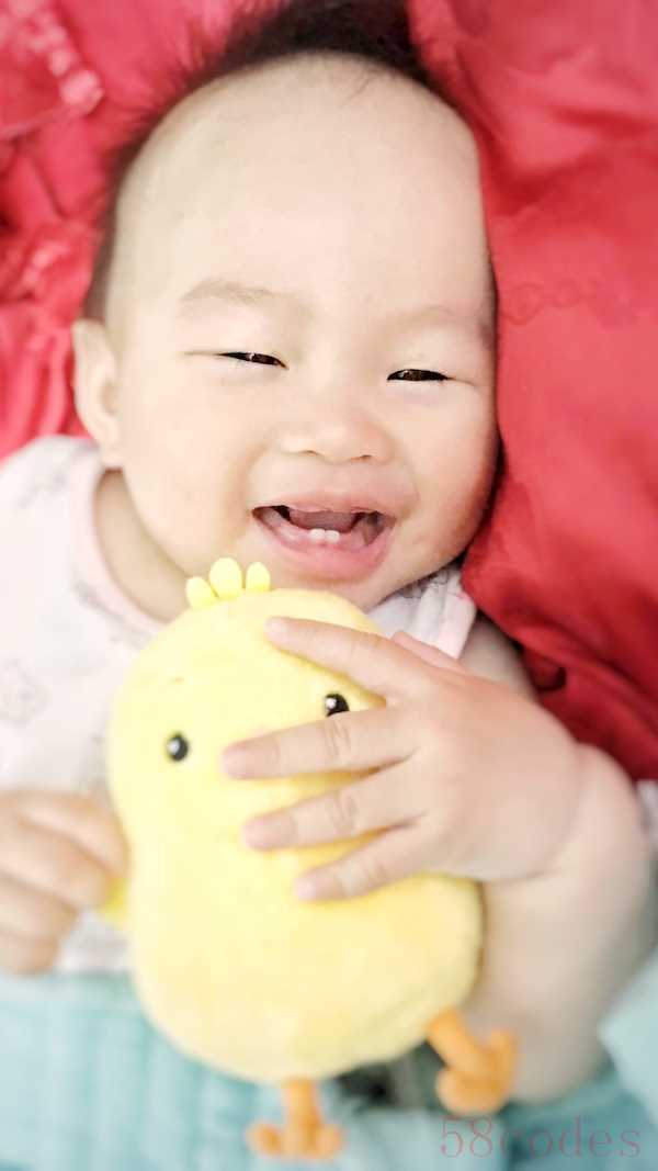 毛茸茸的玩偶、发声玩偶是小花生的最爱。其中,有一个小鸡球球的玩偶,长得毛茸茸的。有一天早晨,小花生刚醒来,在伸懒腰的时候,刚好触摸到了她枕边的小鸡球球。她顺手一捏,灿烂地对我笑起来。那一刻,我的心都融化了。从睡梦中醒来的她,手里抓着毛茸茸的东西,内心一定会特别温暖、有安全感!小鸡球球在她看来,是她的好朋友,是陪伴她一起睡觉的同伴。