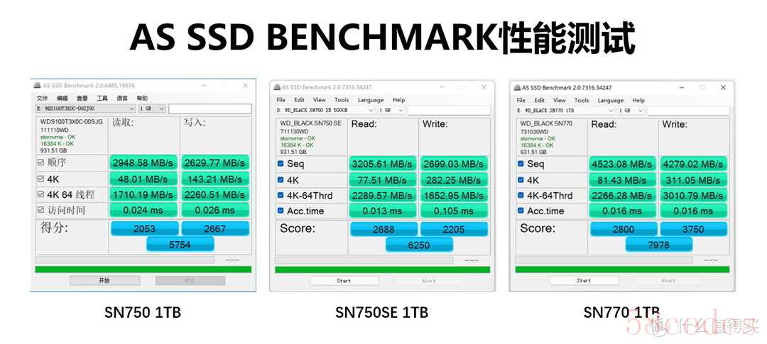 之前SN750se虽然是4.0,但顺序速度基本还是3.0水平,可以说是4.0了个寂寞,在销量上比较惨淡。西数就推出了迭代升级型号SN770,顺序读写可以到5150/4900,4K/延迟性能也大幅提升。